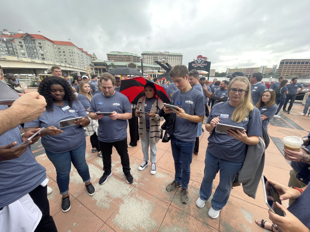 Equipped with our iHunt app and iPads®, your team will tackle location-based trivia, complete creative photo and video challenges, and uncover hidden gems throughout the city. Teams navigate the experience in a way that suits their goals, prioritizing challenges by potential points or proximity. This approach fosters a unique journey shaped by strategic thinking, cooperation, and a spirit of adventure.